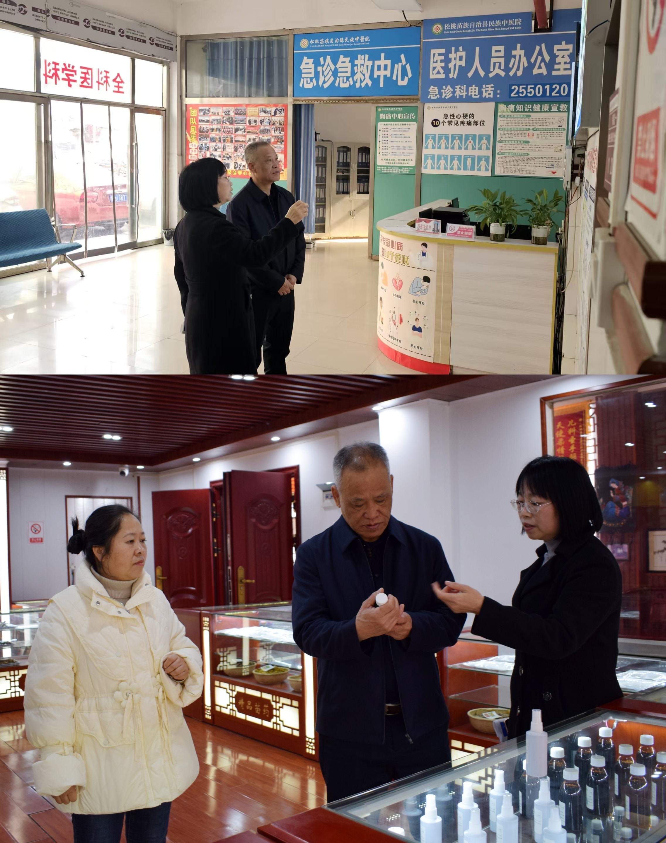 会后,调研组实地观摩了苗医馆、骨伤科、苗医药科和康复科等经典病房和特色科室,详细了解医疗资源配置、人才培养等方面的情况,认真倾听医院发展中的需求与建议。调研组向援黔医务人员赵桂敏同志表达了崇高敬意与诚挚问候,实地查看其生活居住环境,细致询问饮食起居、工作进展及生活保障等方面的情况与困难,鼓励她继续秉持医者仁心的奉献精神,在工作岗位上施展专业所长,为当地医疗卫生事业发展作出积极贡献。
