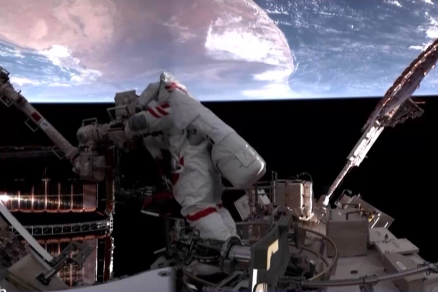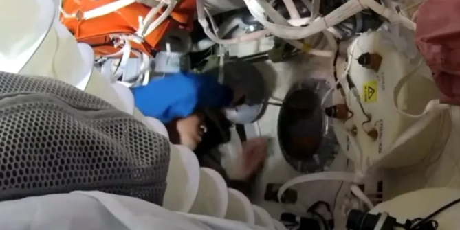 △神舟二十一号航天员乘组出舱检查神舟二十号受损舷窗