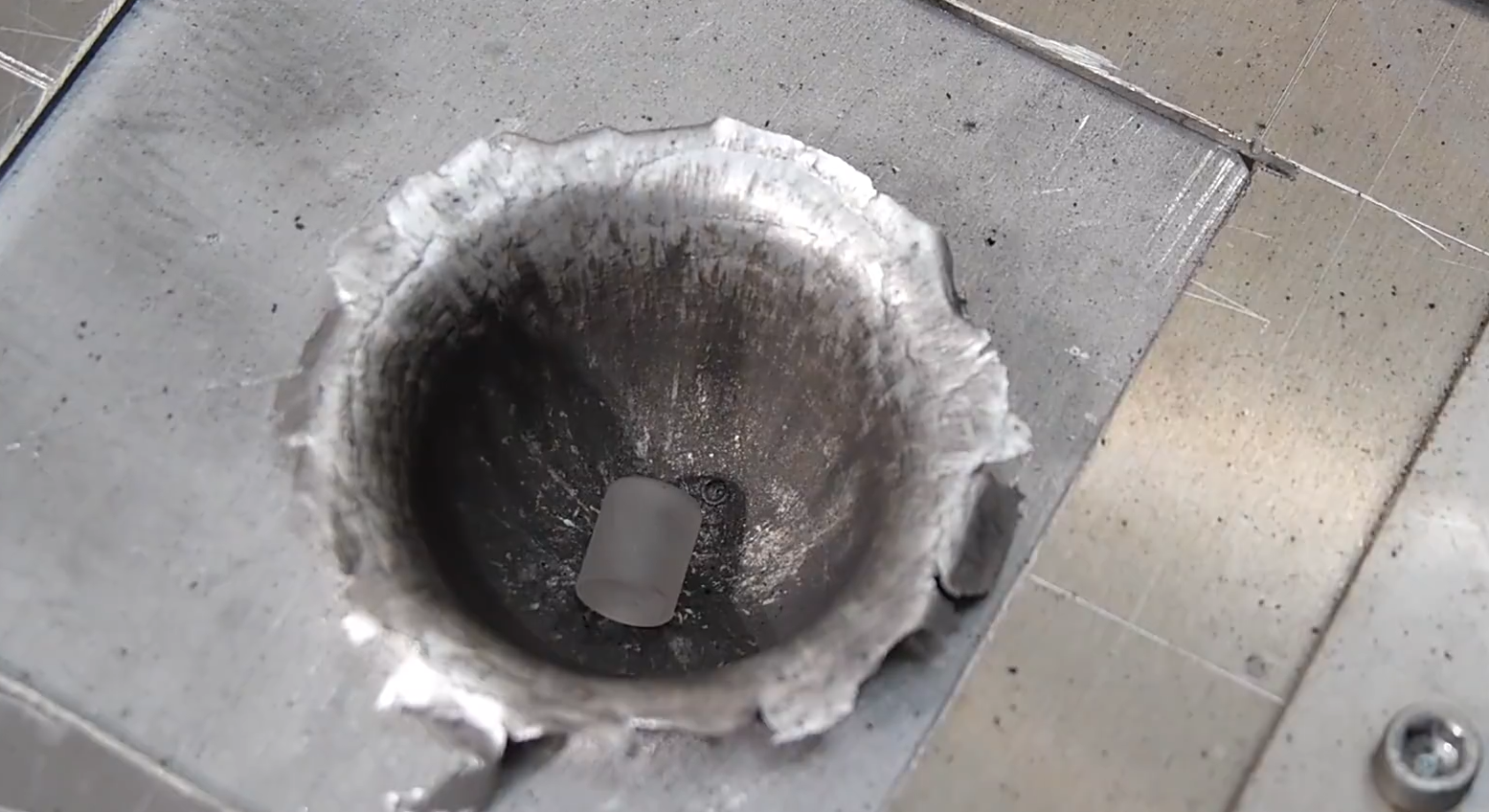 铝锭撞击处瞬间液化